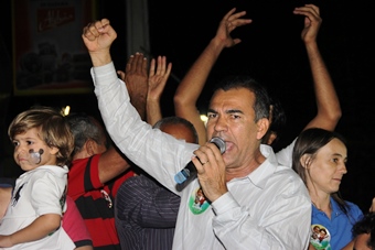 Empossado juntamente com a vice Val seguiu para o palco na Praça Oito